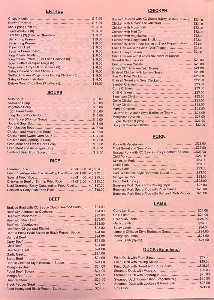 Sun On Chinese Restaurant boasts a diverse menu that reflects the heart of traditional Chinese cuisine. The menu is carefully curated with various categories, including delectable entrees like crispy noodles and mini spring rolls, with prices averaging around $8.76. A selection of heartwarming soups, like miso and seaweed, average about $6.57, perfect for a comforting start. Rice dishes are a staple, with both steamed and fried options ranging from $12.10. The main courses feature an impressive assortment of meats, from beef and lamb to duck and seafood, all priced around $24.10. Signature dishes like the sweet and sour pork and braised beef with XO sauce showcase the kitchen's skill, while vegetarian and kid-friendly options ensure everyone is satisfied. The catering options further enhance its appeal for gatherings and special events, making it a versatile dining choice.